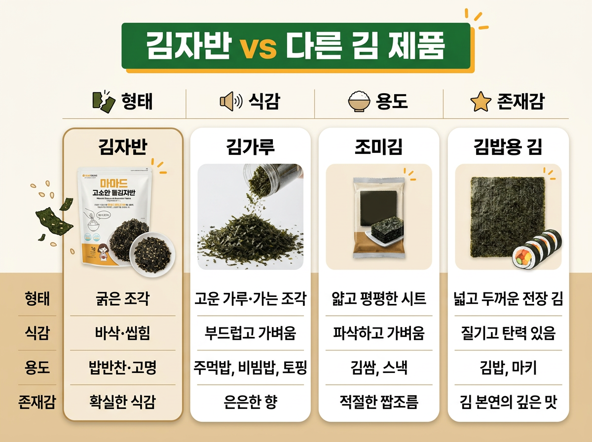 김자반 vs 다른 김 제품 특징 비교