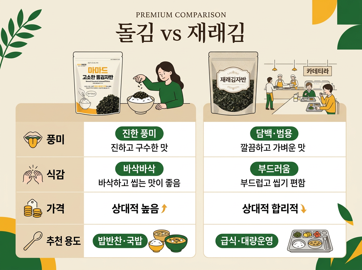 | 업소용 김자반 선택 기준 | 식당·급식소 사장님이 꼭 확인해야 할 7가지 체크포인트 (3) | 2026.04.11 |