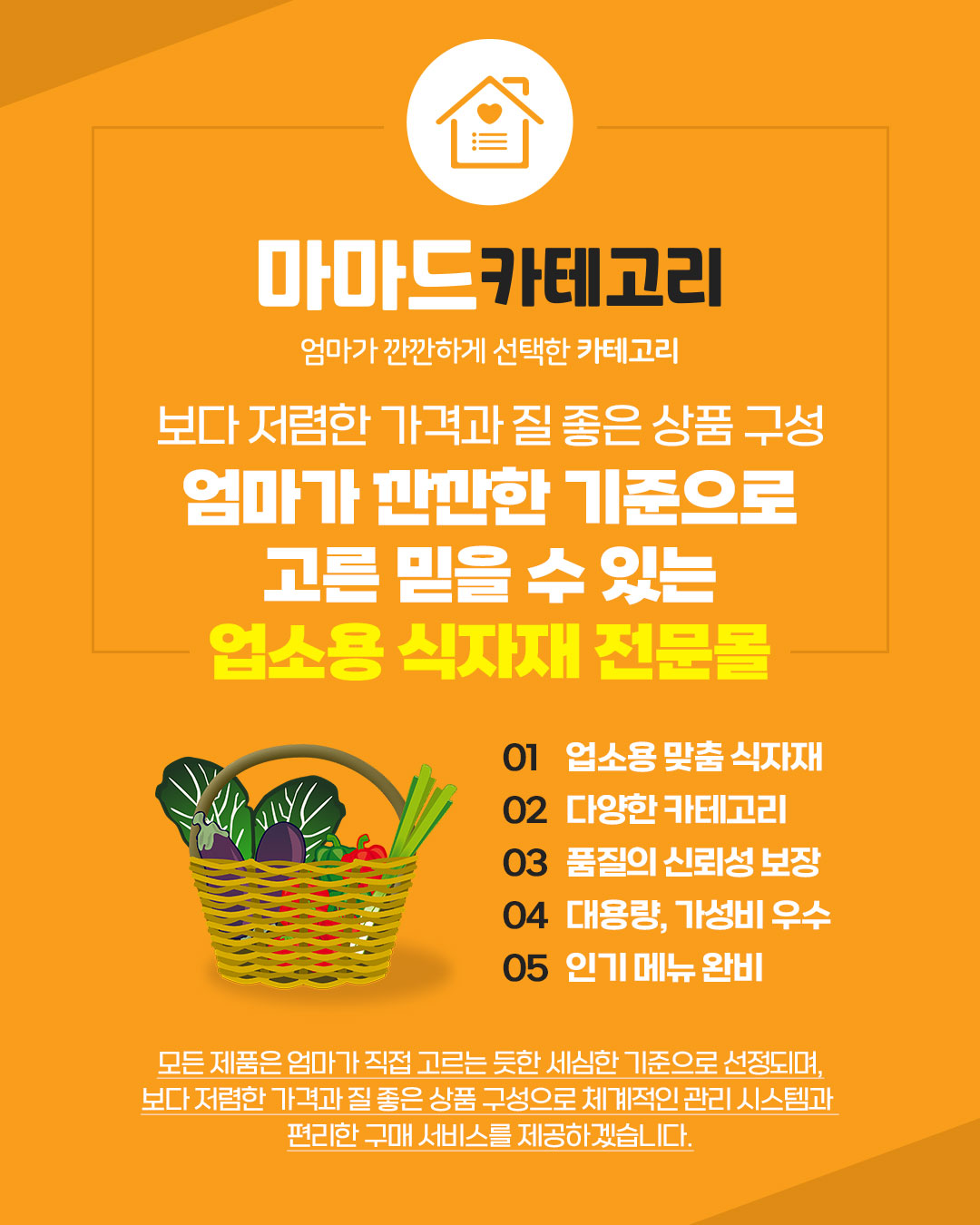사장님들께도 안심할 수 있는 식자재만 전해드리겠다는 마음을 담았습니다.