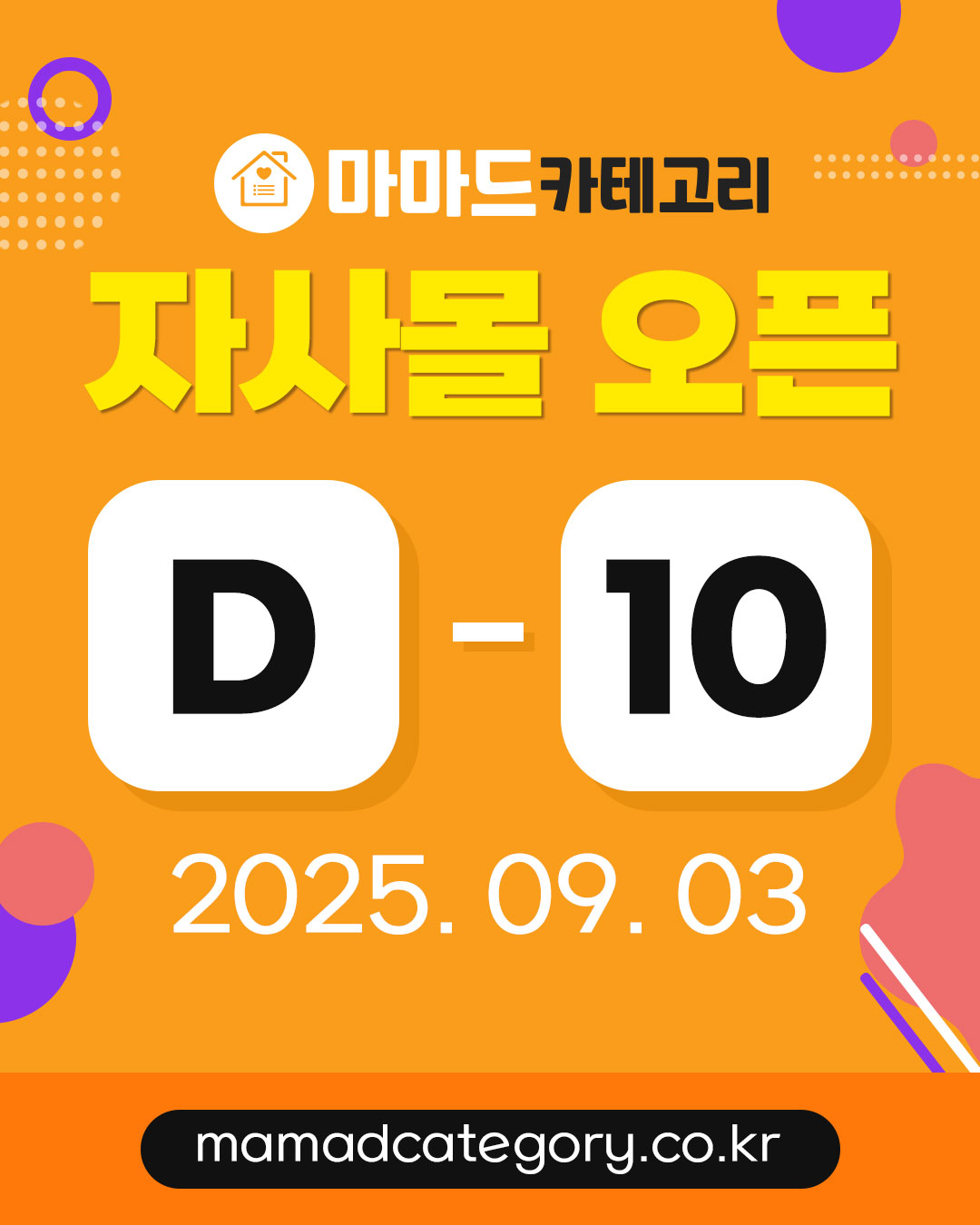 | [마마드카테고리 공식몰 오픈 D-5] 첫 주문 이벤트 안내 (0) | 2025.08.29 |