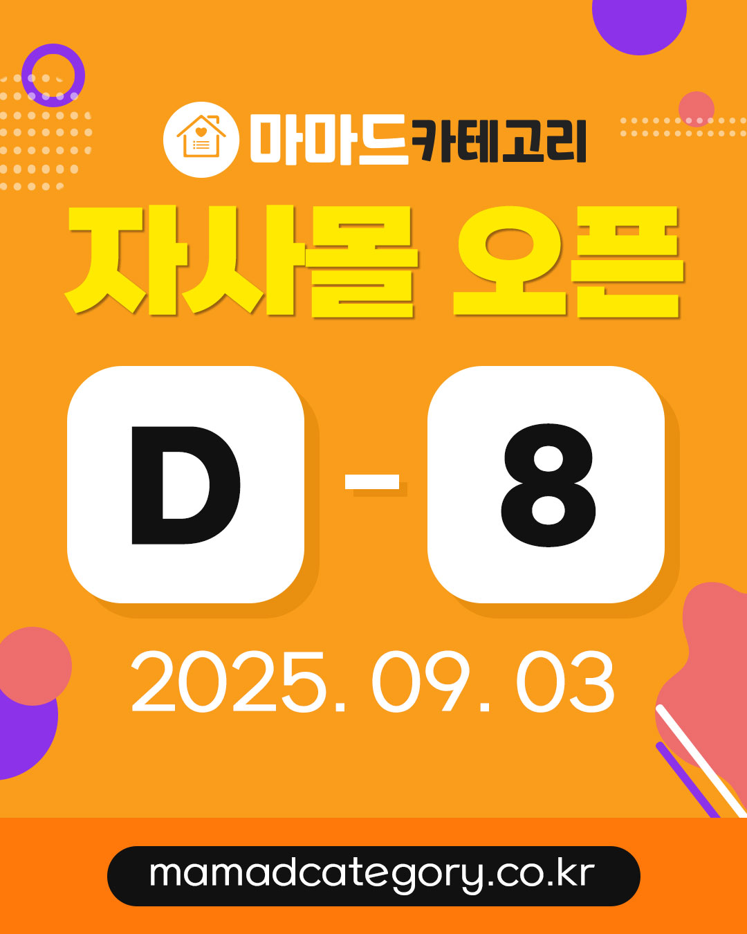 | [마마드카테고리 공식몰 오픈 D-5] 첫 주문 이벤트 안내 (0) | 2025.08.29 |