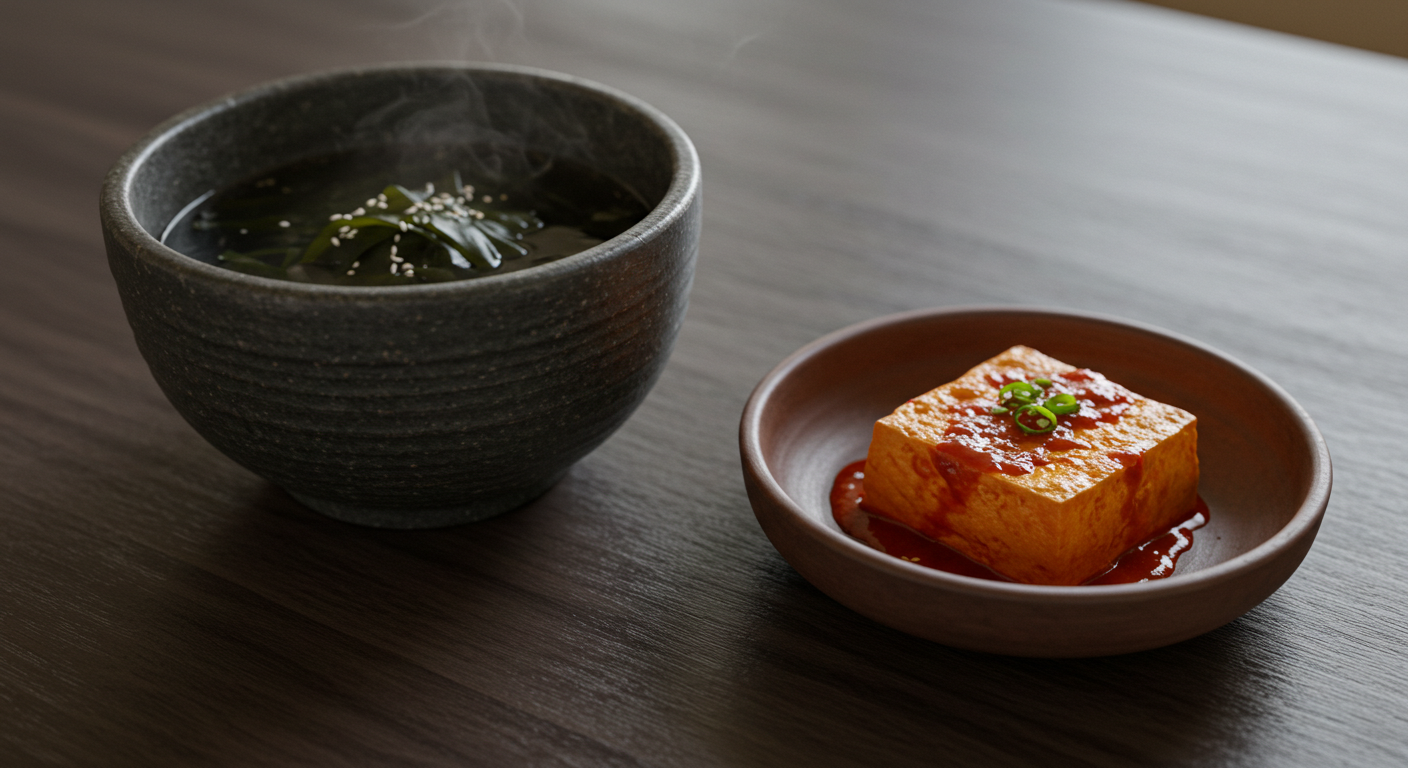 해조류와 발효의 조화! '미역국, 두부조림, 나박김치'