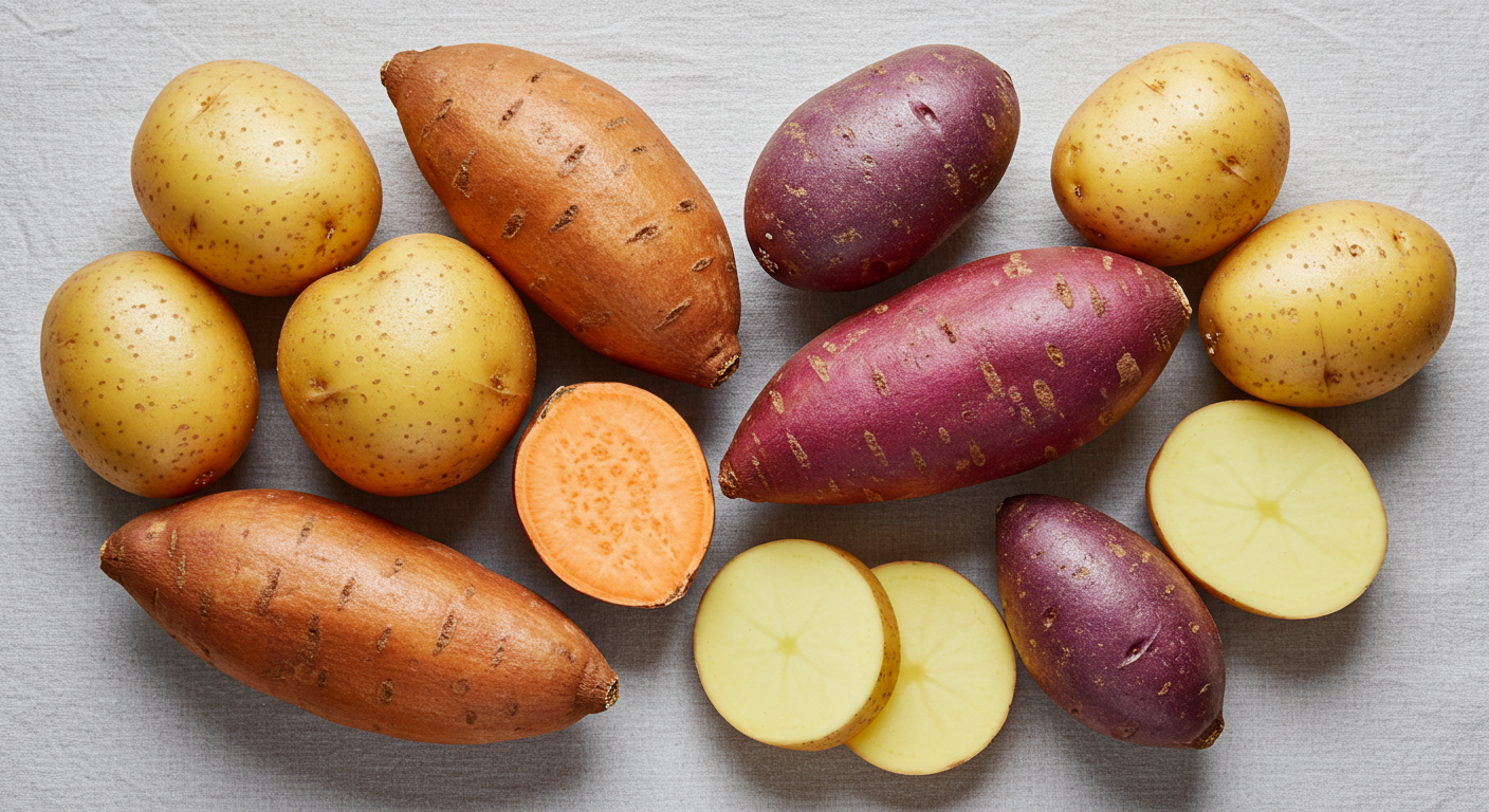 간편하게 즐길 수 있는 과일이지만 칼륨 함량이 매우 높습니다. 특히 토마토의 라이코펜은 혈관 건강에도 좋습니다. - 고구마, 감자