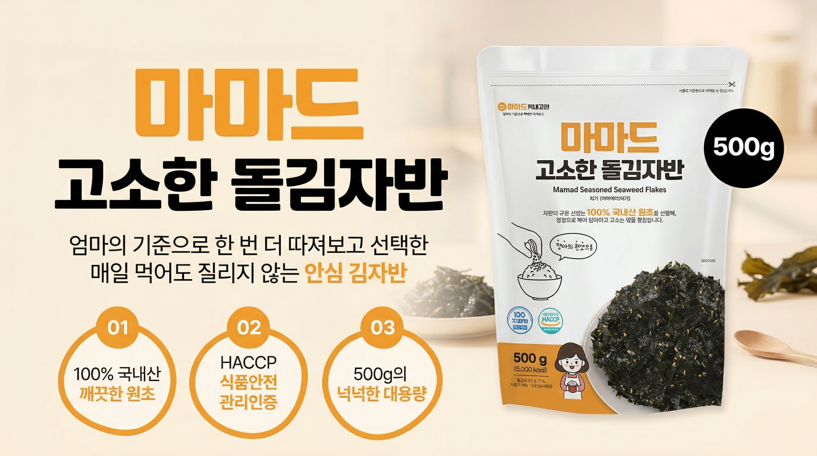 | 급식용 김자반 추천 | 학교·유치원·단체급식에 딱 맞는 마마드 고소한 돌김자반 (0) | 2026.03.24 |