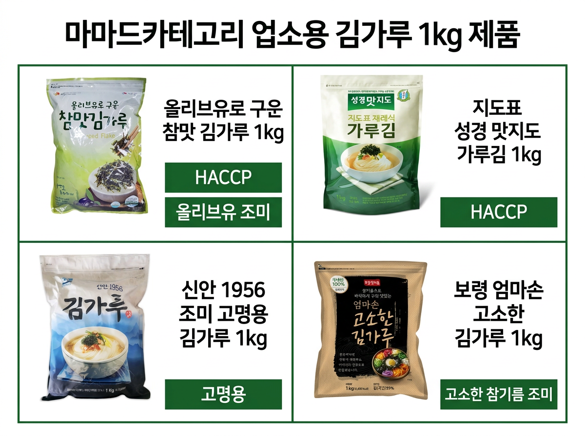 마마드카테고리 공식몰에서 판매 중인 1kg 단위 업소용 김가루 제품을 정리했어요.