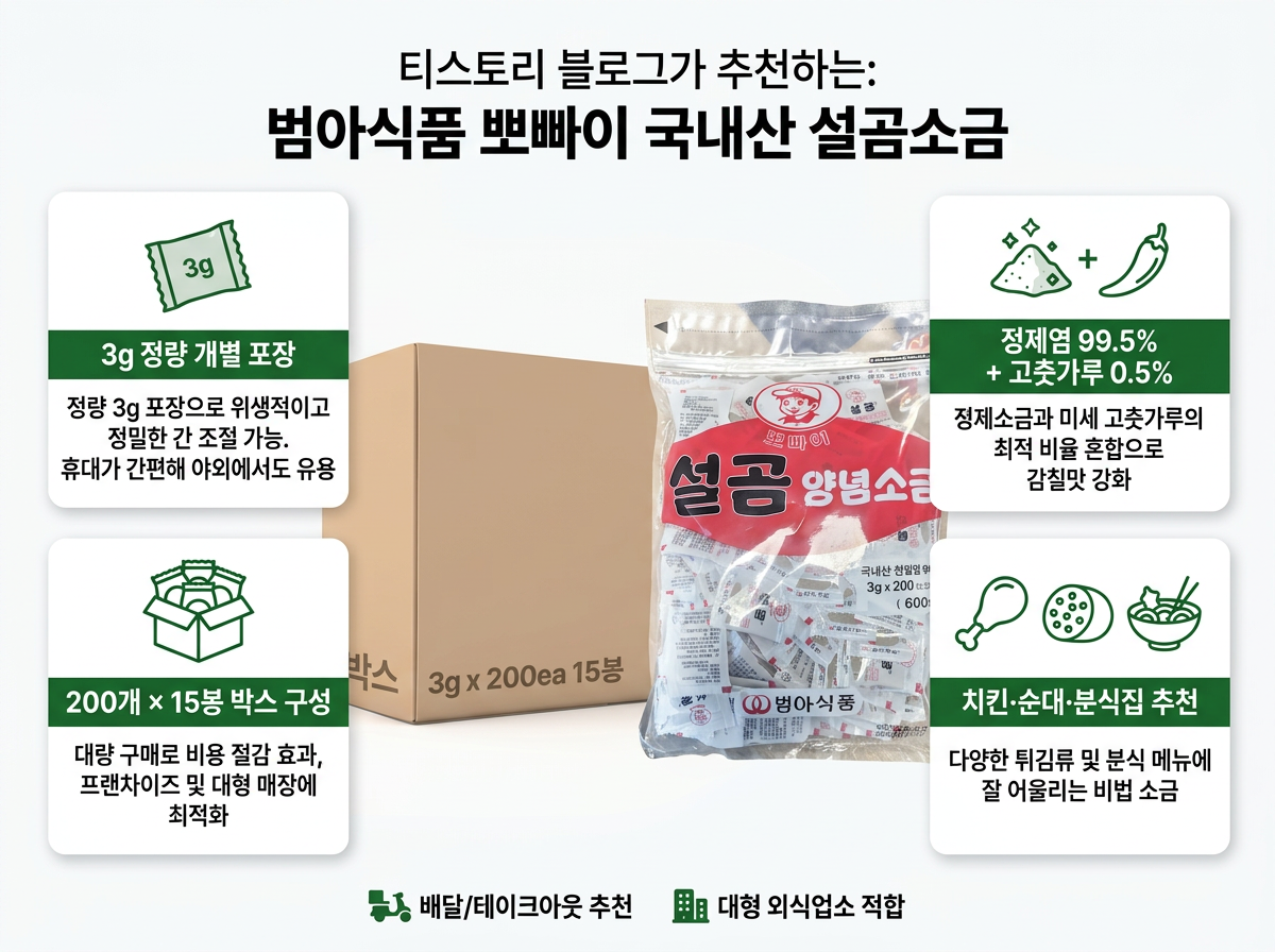 | 치킨집 배달 소금 어떤 거 써야 할까? | 뽀빠이 치킨 양념소금 업소용 완전 가이드 (0) | 2026.03.31 |