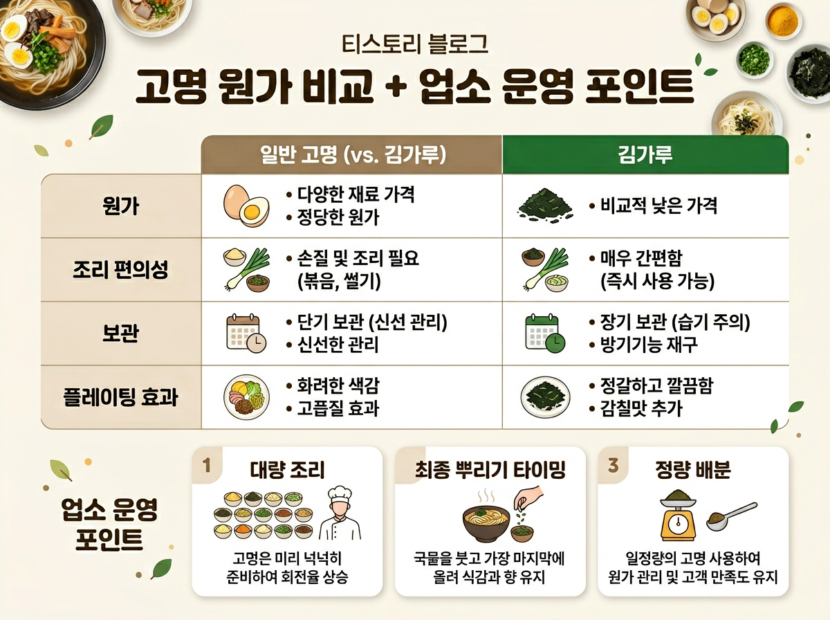 | 비빔밥 원가 낮추면서 고급스럽게 보이는 방법 | 김가루 고명 활용법 (0) | 2026.03.31 |